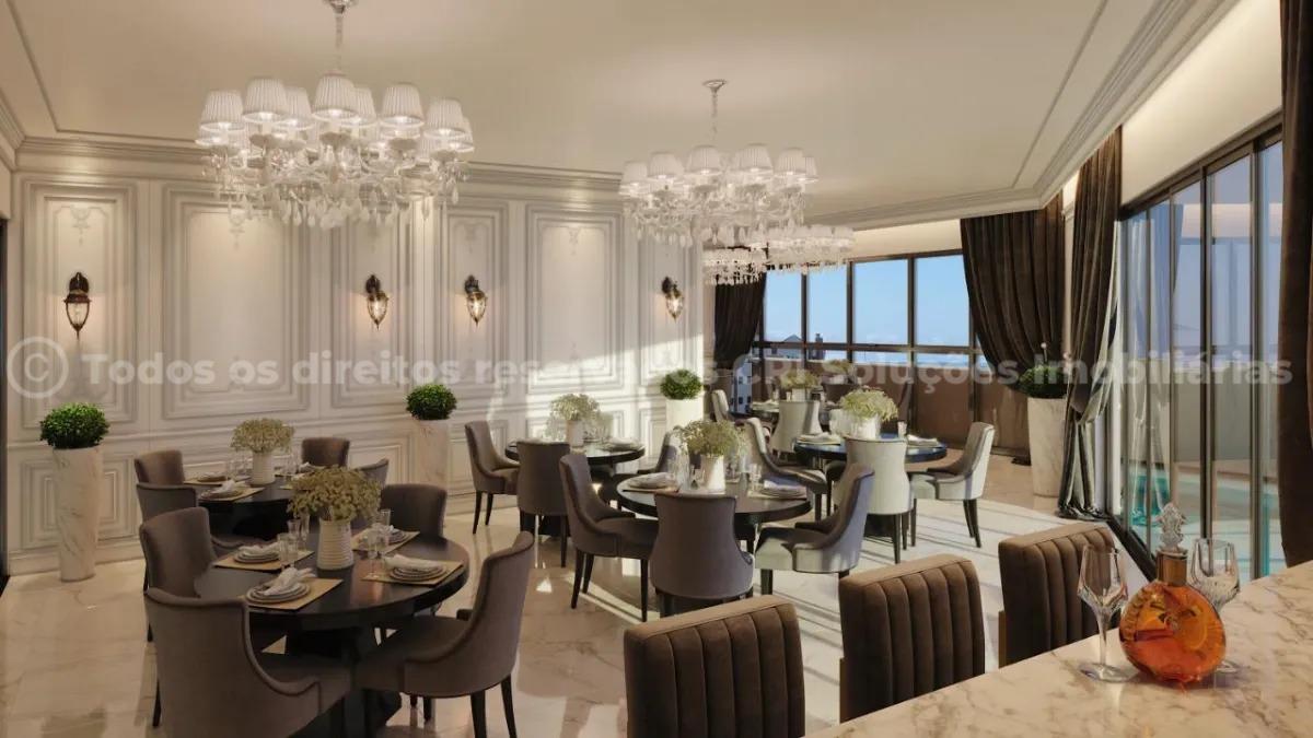 O apartamento oferece 157 m² de conforto e sofisticação minimalista, além de 3 suítes e uma piscina totalmente privativa.